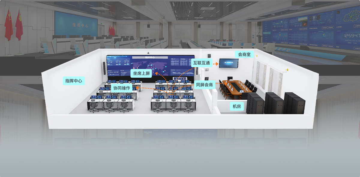 一机多屏一屏多机 大屏自由布局 坐席信号管理 设备状态监测 集成一体化控制