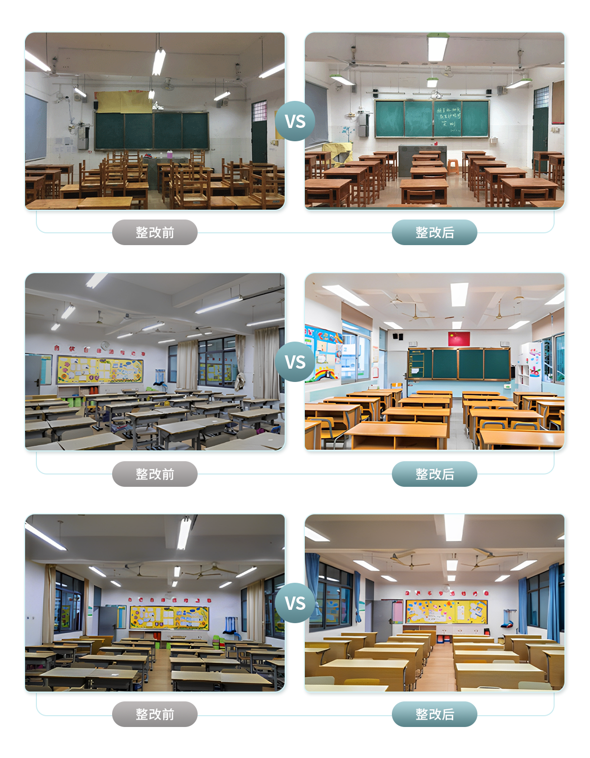眩光itc针对教学场景需求,推出教室灯具与黑板灯具两大教室照明系统。两款产品均采用LED光源技术,其核心优势在于超长寿命、低能耗、瞬时响应、抗震性好以及环保无毒特性。通过专业的照明设计,系统照度和均匀度均优于国家标准,能有效地保护师生视力健康。